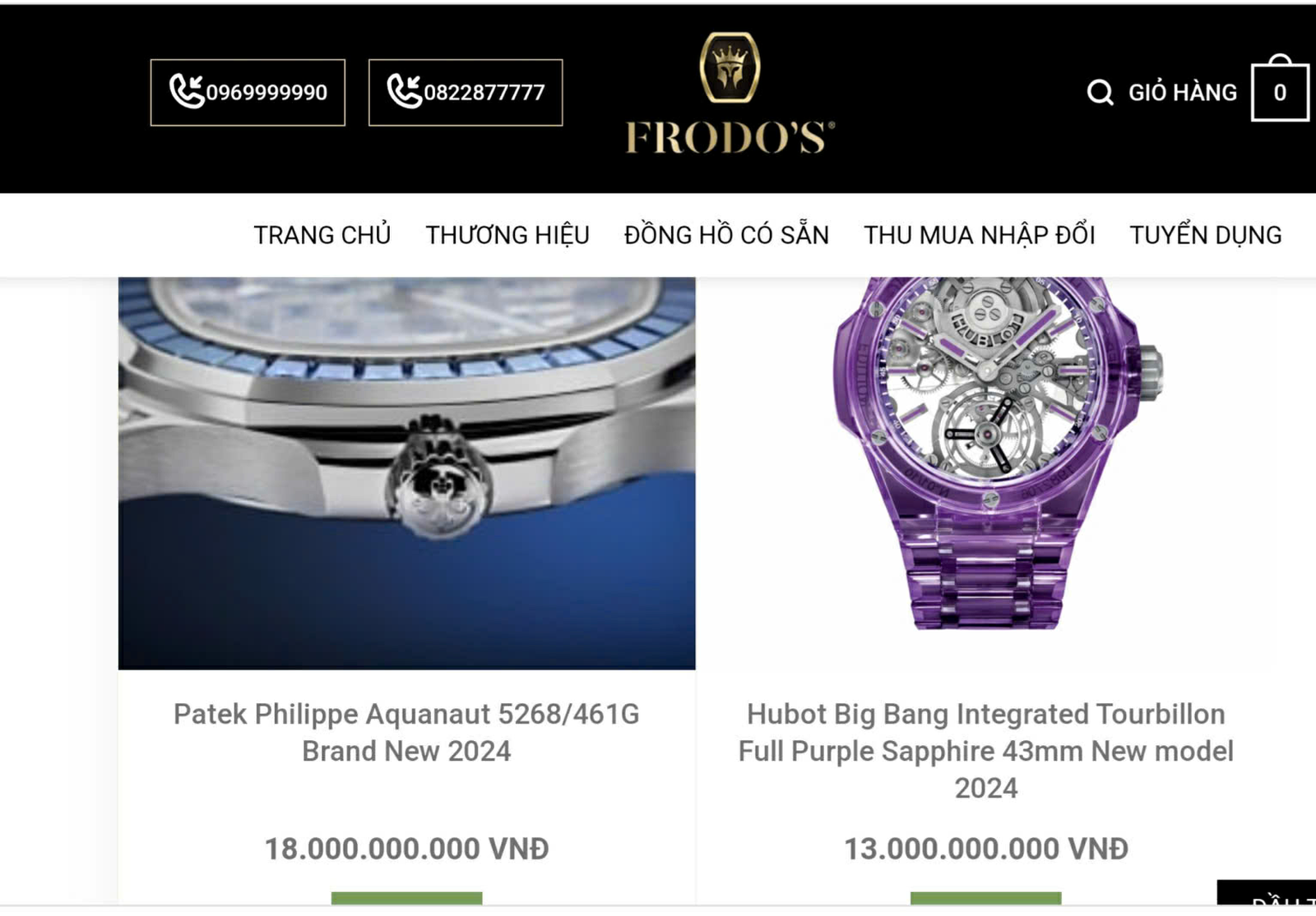 Frodos đang bán nhiều thương hiệu đồng hồ xa xỉ có giá trị lên đến hơn 10 tỷ đồng/chiếc, nhưng không xuất hóa đơn VAT, dẫn đến nguy cơ thất thu thuế cho ngân sách Nhà nước. Ảnh: Huân Cao
