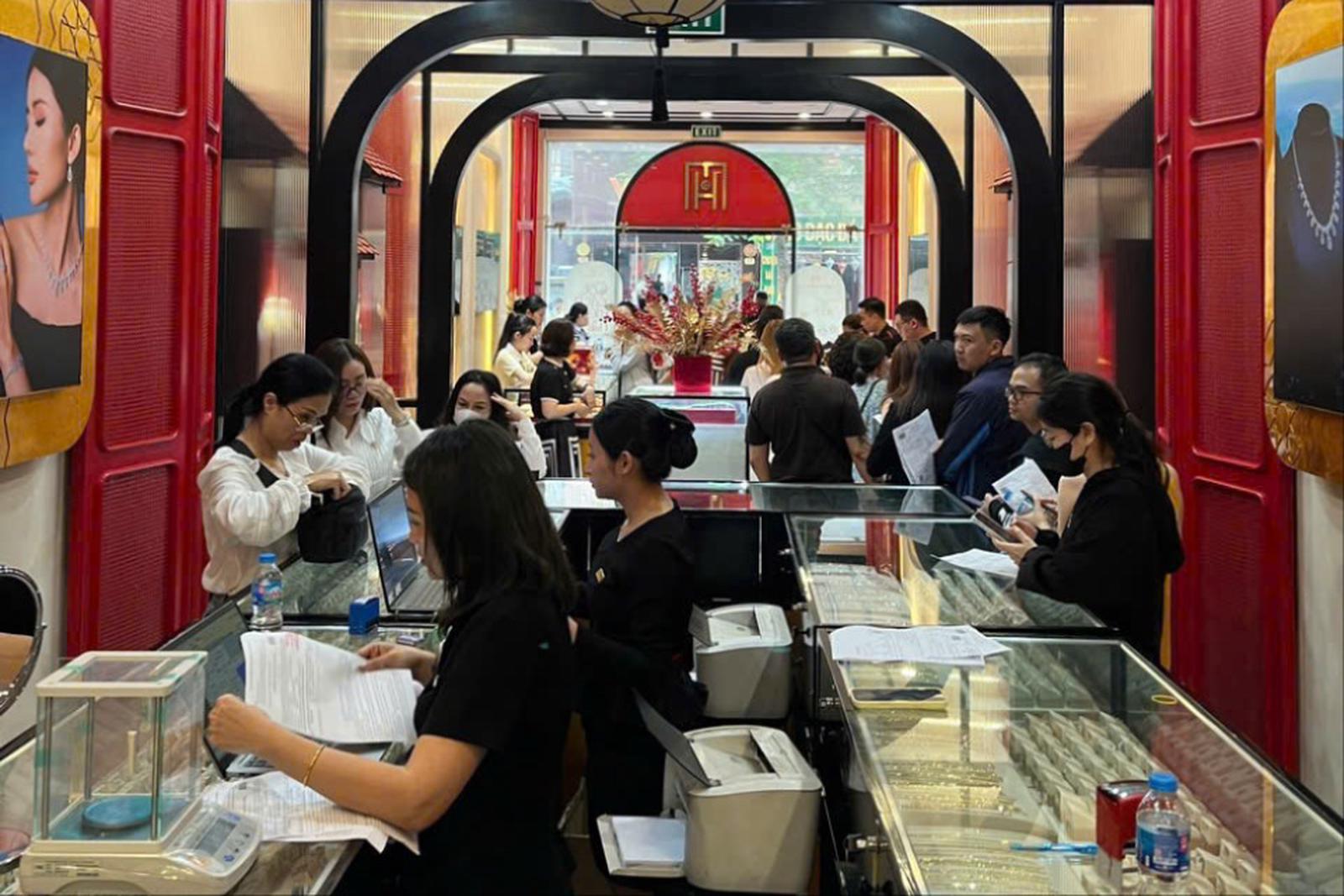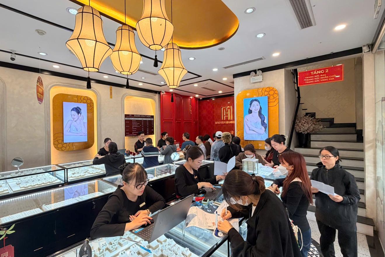 Khách hàng giao dịch vàng tại cửa hàng Bảo Tín Mạnh Hải. Ảnh: Hải Ngọc