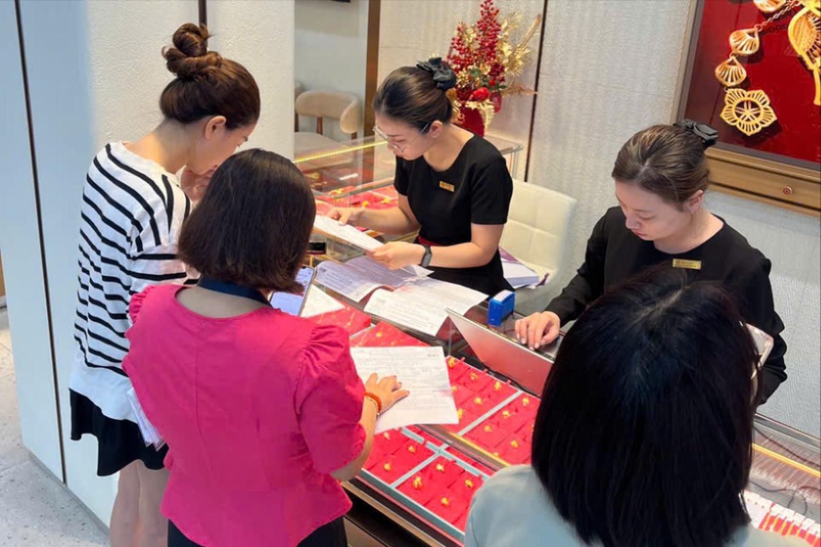 Người dân giao dịch vàng tại hệ thống Bảo Tín Mạnh Hải. Ảnh: Hải Ngọc