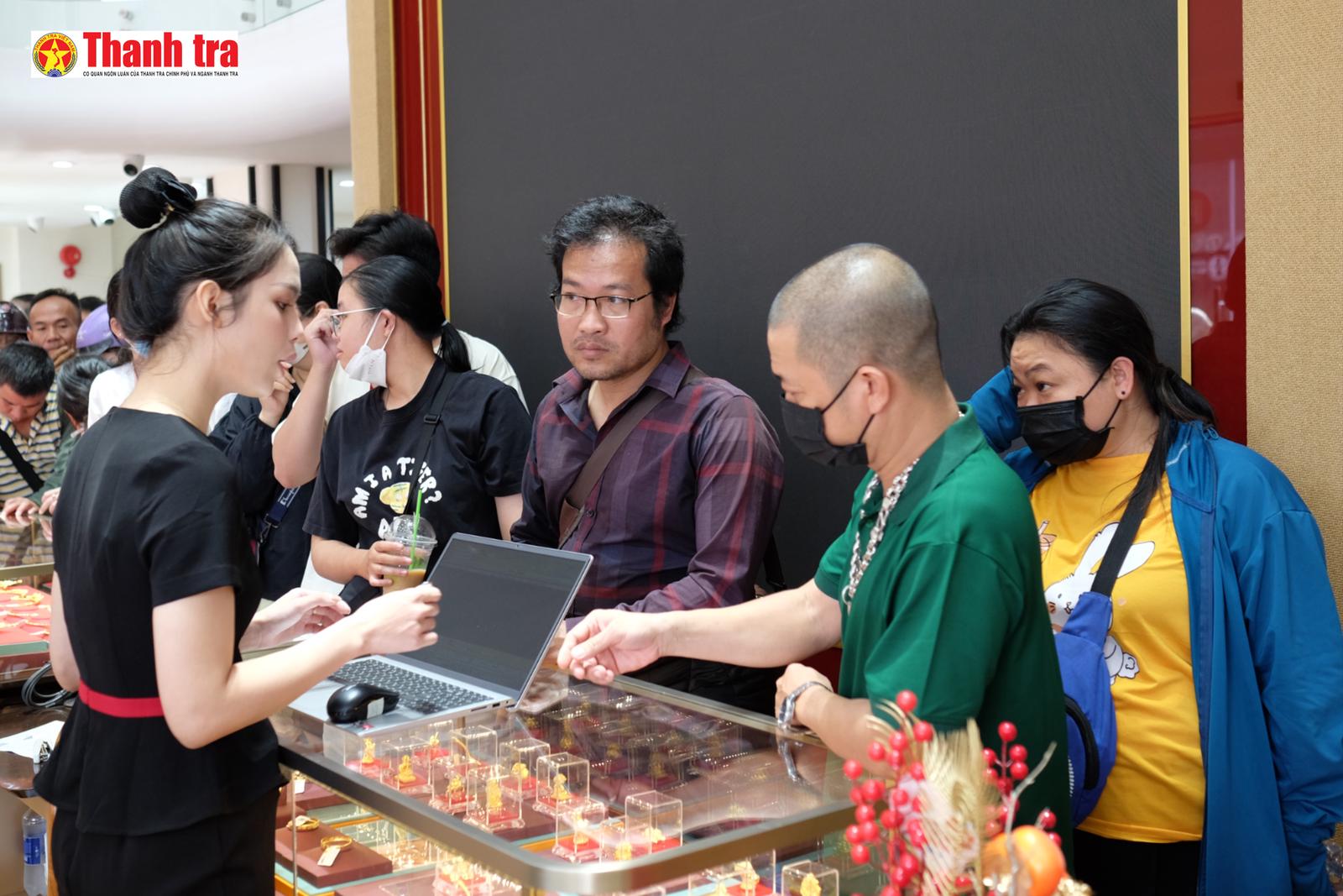 Người dân giao dịch vàng tại Bảo Tín Mạnh Hải ở Hà Nội, khi giá vàng trong nước tiếp tục tăng mạnh theo đà thế giới. Ảnh: Hải Ngọc