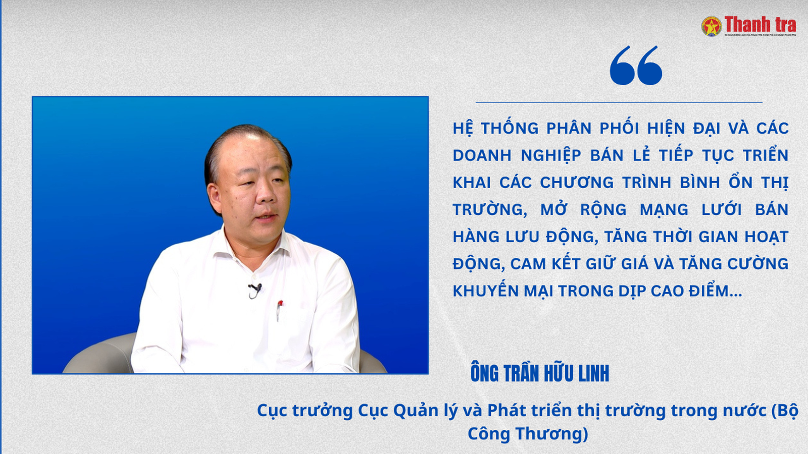 + Ông Trần Hữu Linh: Trước nhu cầu mua sắm tăng cao dịp cuối năm và Tết, Cục TTTN xác định bảo đảm chất lượng hàng hóa, an toàn thực phẩm và bảo vệ quyền lợi người tiêu dùng là nhiệm vụ trọng tâm. Theo đó, Cục TTTN tăng cường theo dõi thị trường, tập trung vào các mặt hàng có nhu cầu cao như thực phẩm, bánh kẹo, đồ uống, hàng tiêu dùng nhanh.
