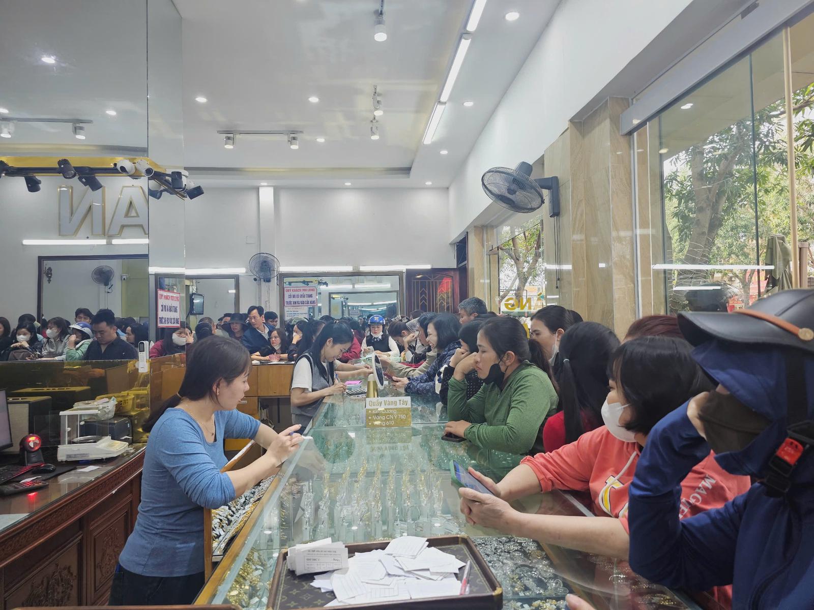 Tại các tuyến phố tập trung nhiều cơ sở kinh doanh vàng bạc như Nguyễn Công Trứ, lượng khách đến giao dịch tăng đột biến. Nhiều cửa hàng phải tăng cường nhân viên, bố trí khu vực chờ để đảm bảo phục vụ.