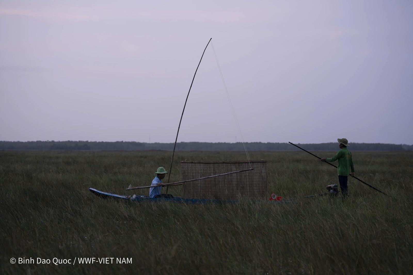 Thu hoạch lúa ma về đêm. Ảnh: Đào Quốc Bình WWF-VN