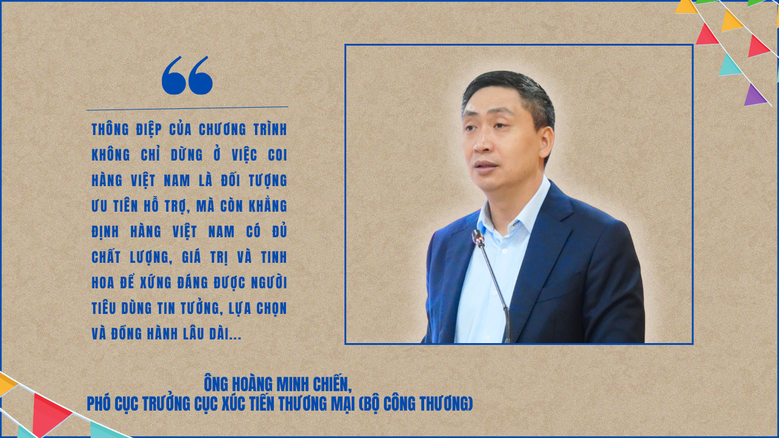"Thông điệp của chương trình không chỉ dừng ở việc ưu tiên hỗ trợ, mà còn khẳng định hàng Việt Nam có đủ chất lượng, giá trị và tinh hoa để trở thành lựa chọn lâu dài của người tiêu dùn", ông Chiến cho biết thêm.