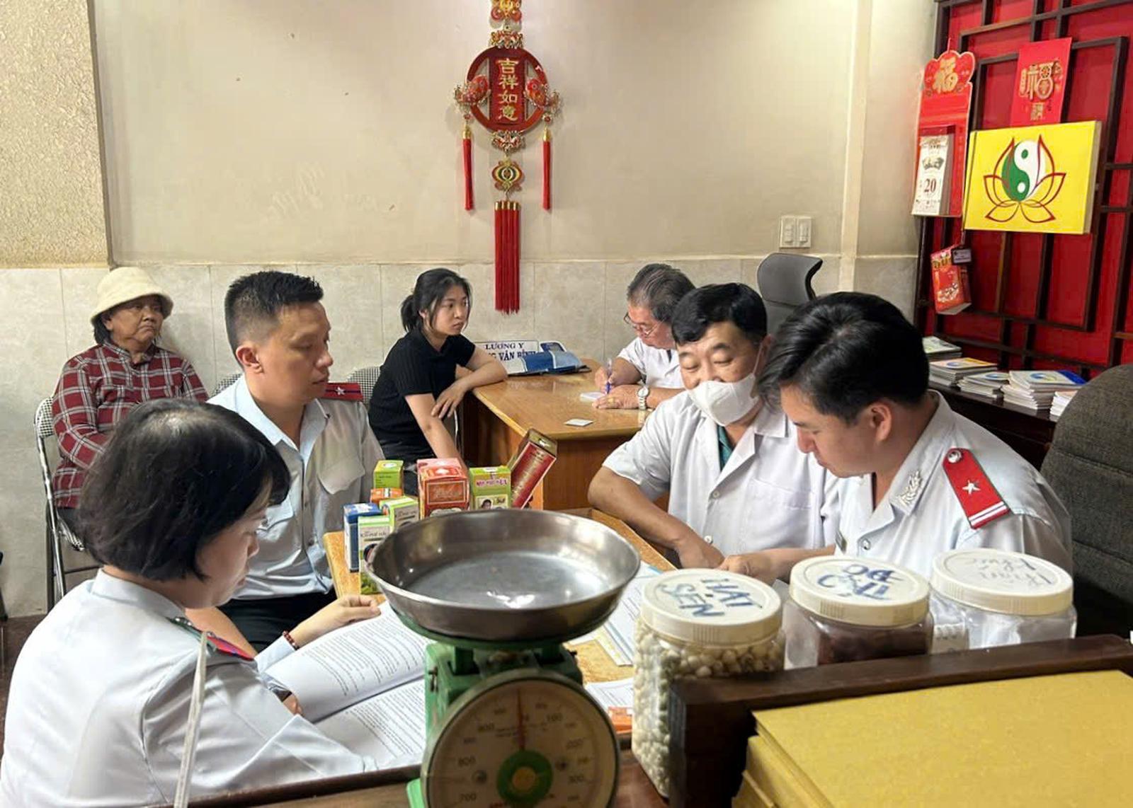 Thanh tra Sở Y tế kiểm tra một cơ sở thuốc Đông Y. Ảnh A.N