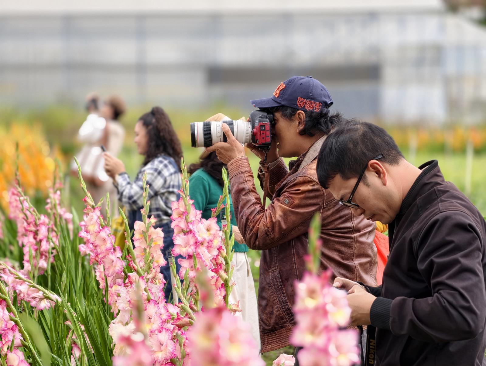 Tuy nhiên, những ngày cuối tháng 2, vườn lay ơn nở rộ do trễ cữ này lại bất ngờ hút du khách tới tham quan, chụp hình.