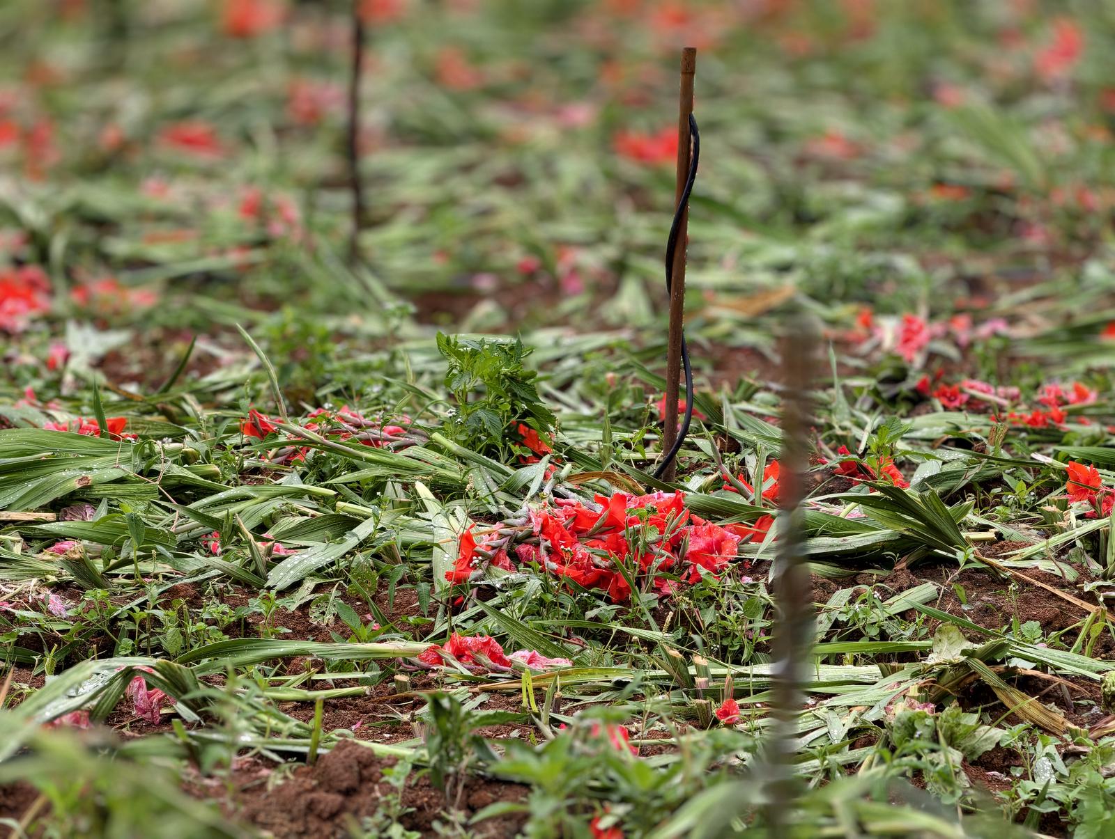 Thực tế, đây là vườn hoa lay ơn khoảng 1.000m2 của gia đình ông Phước do thời tiết bất lợi khiến diện tích hoa này không nở kịp dịp Tết Nguyên đán, đến những ngày gần đây mới nở nên thương lái không thu mua nữa. Gia đình ông Phước đang chuẩn bị cắt bỏ, lấy củ để làm giống cho vụ sau.