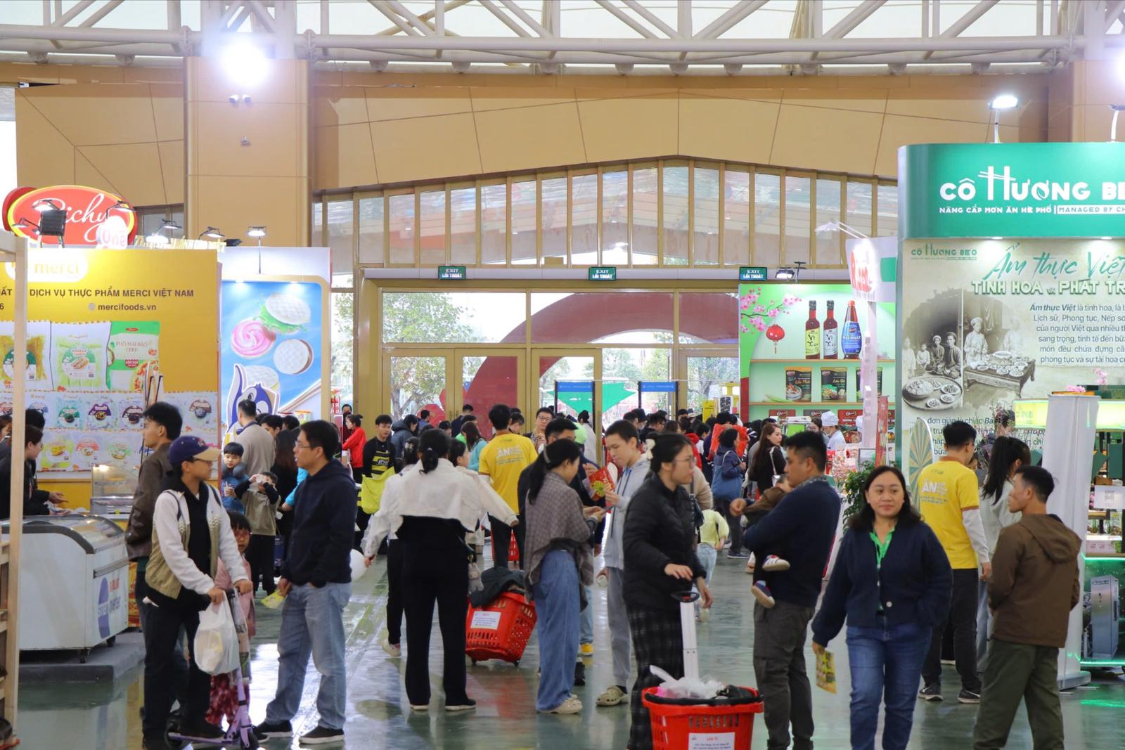 Ngay đầu giờ mở cửa, các lối vào hội chợ đã nhộn nhịp. Nhiều gia đình tranh thủ ngày nghỉ để dạo hội, lựa chọn thực phẩm, quà biếu, đặc sản vùng miền và các mặt hàng tiêu dùng phục vụ Tết. Theo ghi nhận, sức mua tăng rõ rệt, nhất là ở các gian hàng thực phẩm, đặc sản và hàng tiêu dùng thiết yếu.