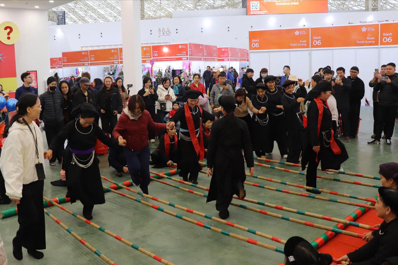 Không chỉ là không gian mua sắm, Hội chợ Mùa Xuân còn mang đến chuỗi hoạt động văn hóa, giải trí phong phú. Buổi sáng, chương trình biểu diễn của Nhà hát Ca, Múa, Nhạc Quốc gia Việt Nam tại sảnh 7 với các ca khúc về mùa xuân và Hà Nội thu hút đông khán giả.