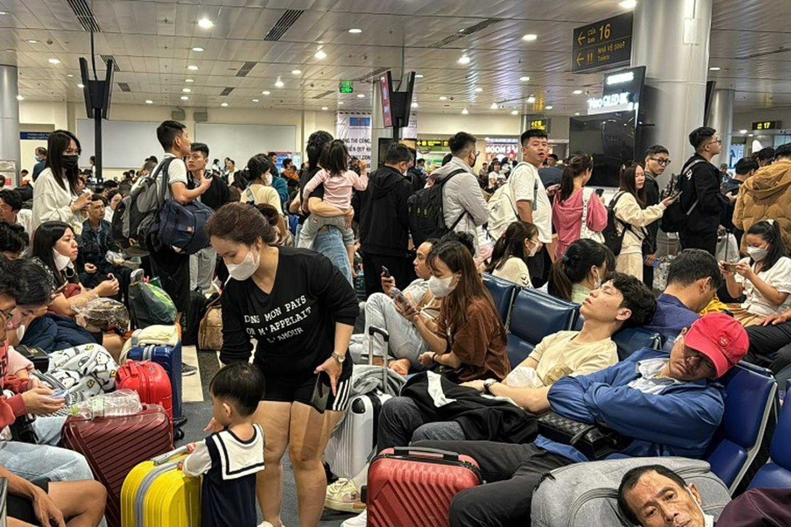 Hành khách “la liệt” tại sân bay do chậm chuyến. Ảnh: TQ