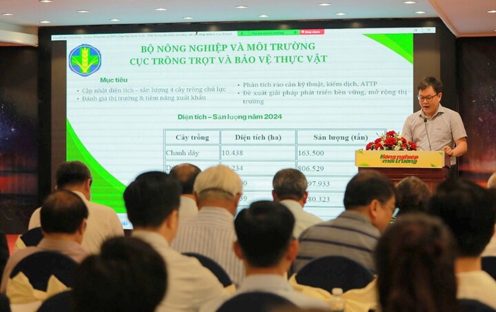 Theo ông Nguyễn Như Cường, Phó Vụ trưởng Vụ Khoa học và Công nghệ (Bộ Nông nghiệp và Môi trường), trái cây là trụ cột quan trọng của ngành trồng trọt, đóng góp lớn vào kim ngạch xuất khẩu nông sản. Với diện tích canh tác 1,3 triệu ha và sản lượng 15 triệu tấn mỗi năm, ngành trái cây không chỉ đáp ứng nhu cầu nội địa mà còn khẳng định vị thế trên thị trường quốc tế. Chuối, dứa, dừa và chanh dây nổi bật nhờ giá trị kinh tế cao, phù hợp điều kiện sinh thái và có tốc độ tăng trưởng ấn tượng về sản lượng và thị trường xuất khẩu.
