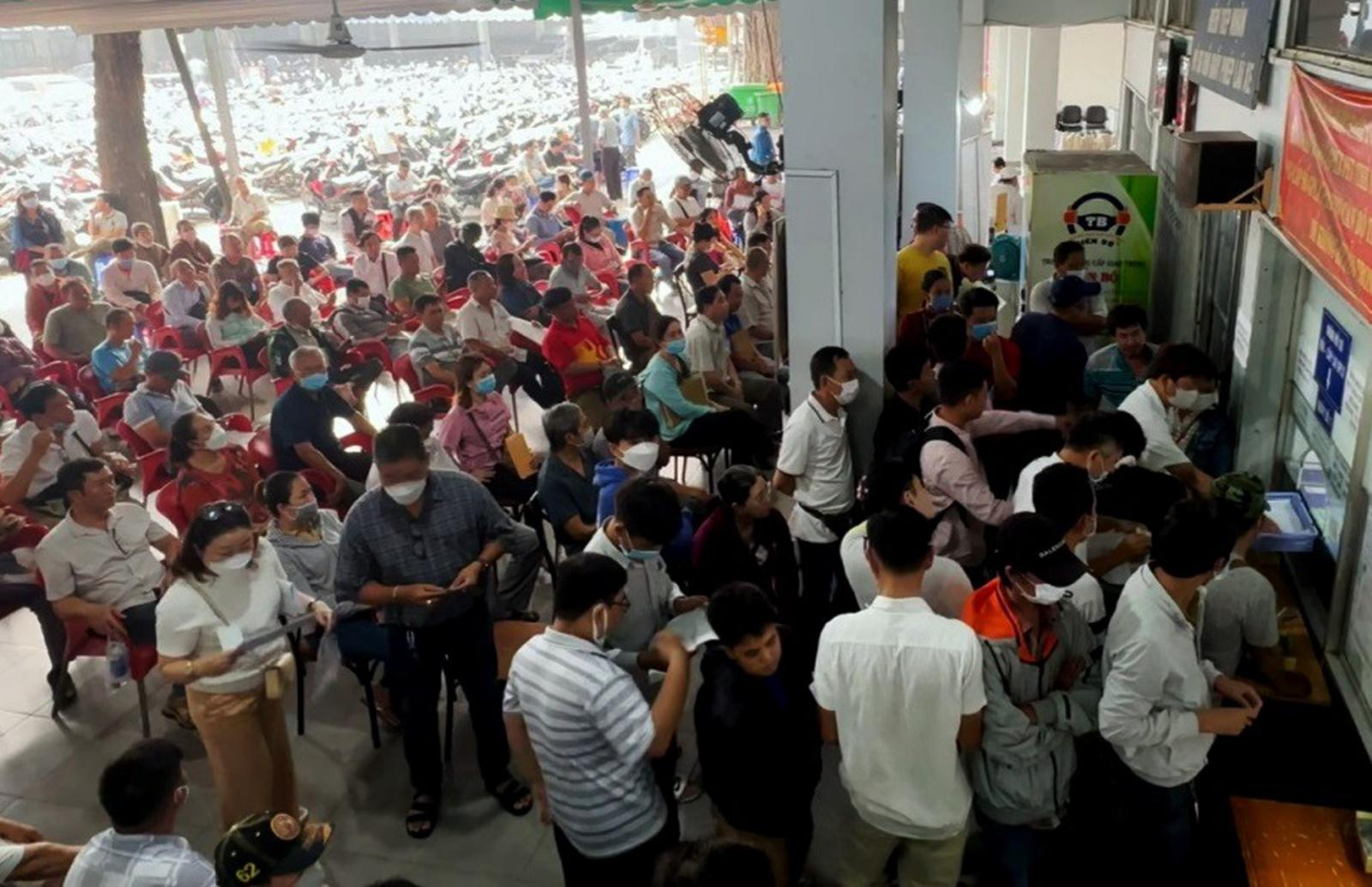 Người dân xếp hàng, ngồi kín sảnh tại trụ sở cấp đổi GPLX tại TP Hồ Chí Minh trong những ngày qua. Ảnh: MH