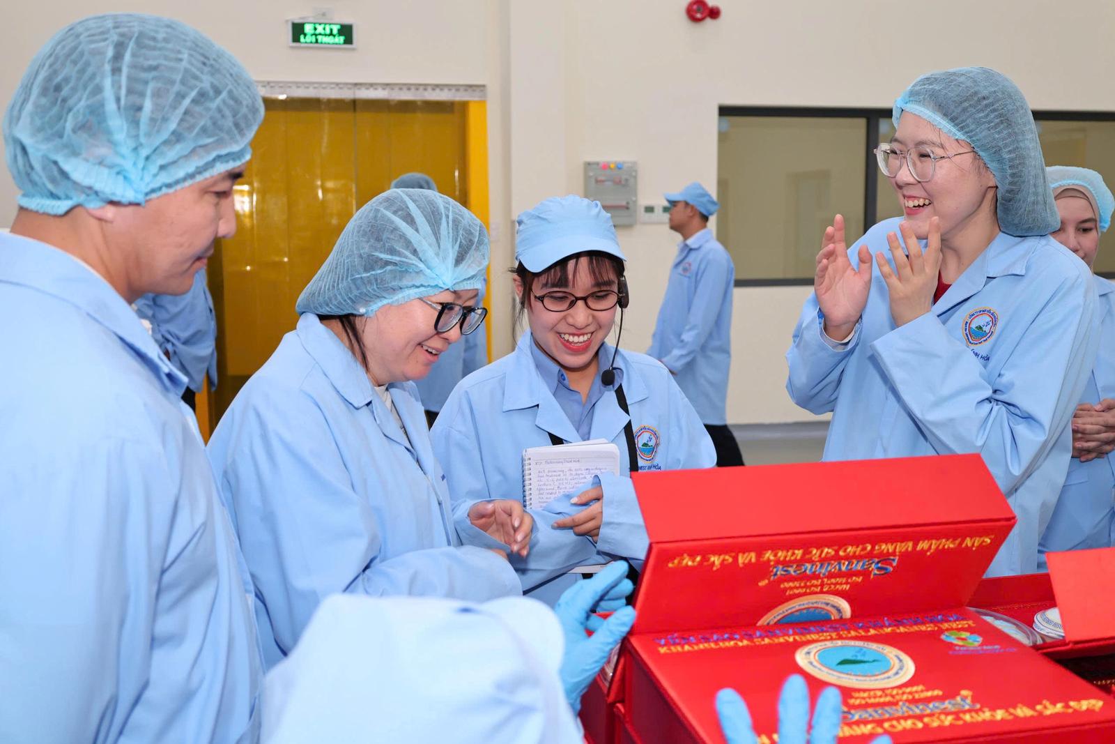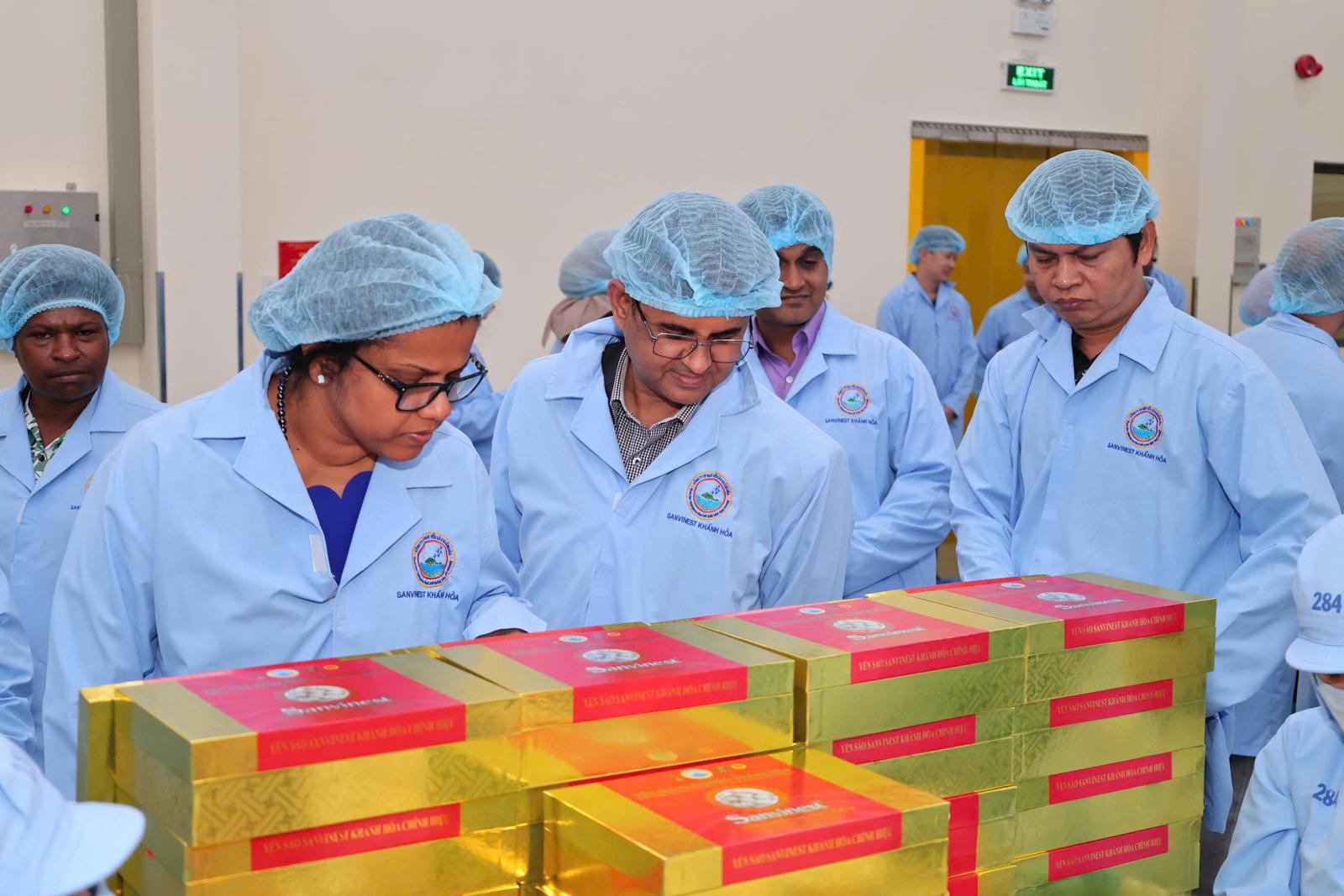 Trong khuôn khổ chuyến thăm, đoàn đã trực tiếp tham quan Xưởng sản xuất và khu vực showroom. Tại đây, các đại biểu được tìm hiểu quy trình khai thác và chế biến Yến sào Khánh Hoà kết hợp giữa phương pháp cổ truyền và dây chuyền công nghệ hiện đại tiêu chuẩn Châu Âu, mang đến người tiêu dùng những sản phẩm dinh dưỡng cao cấp.
