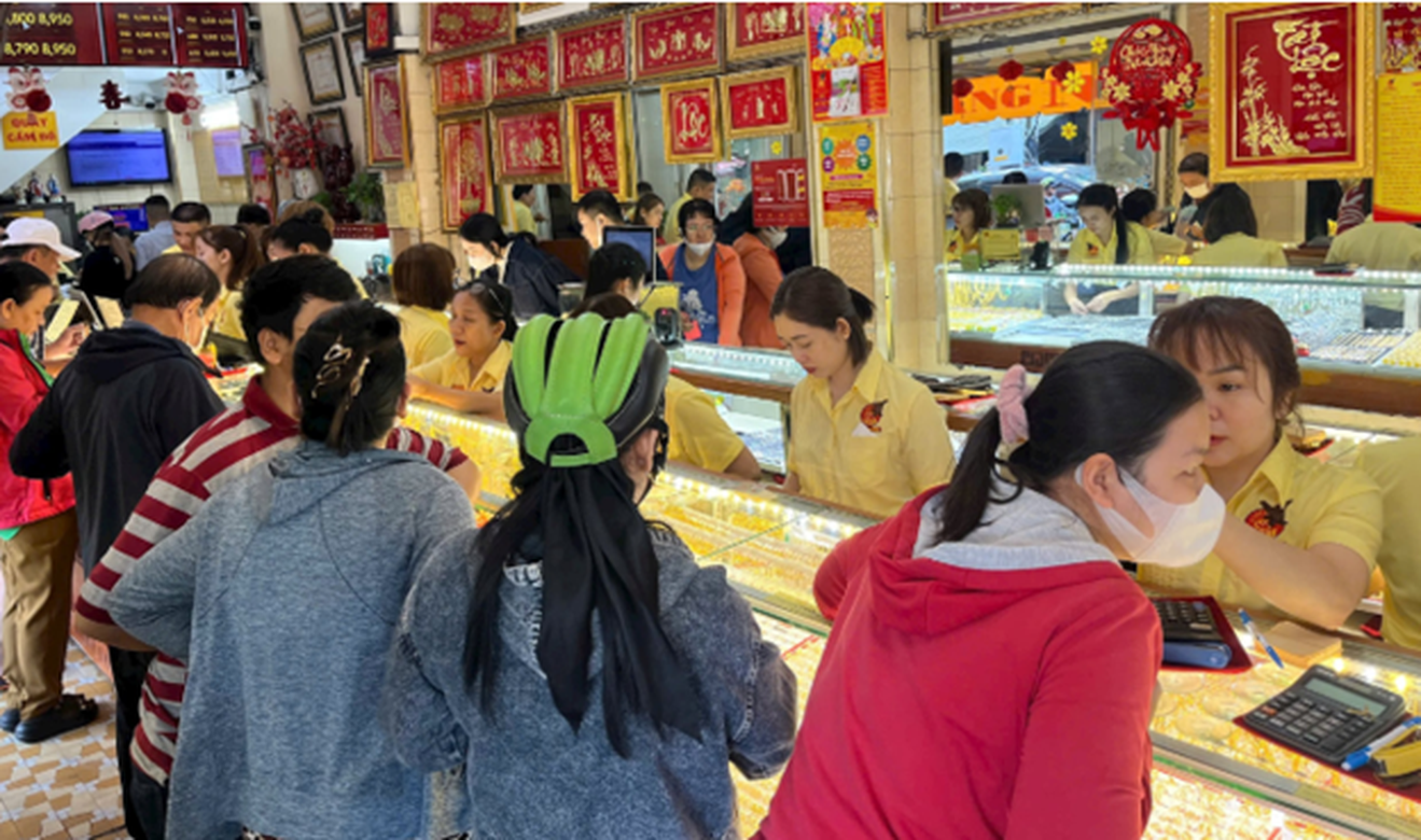 Cảnh mua bán vàng tấp nập tại một cửa hàng kinh doanh vàng tại quận 5 - TP Hồ Chí Minh (ảnh minh hoạ)