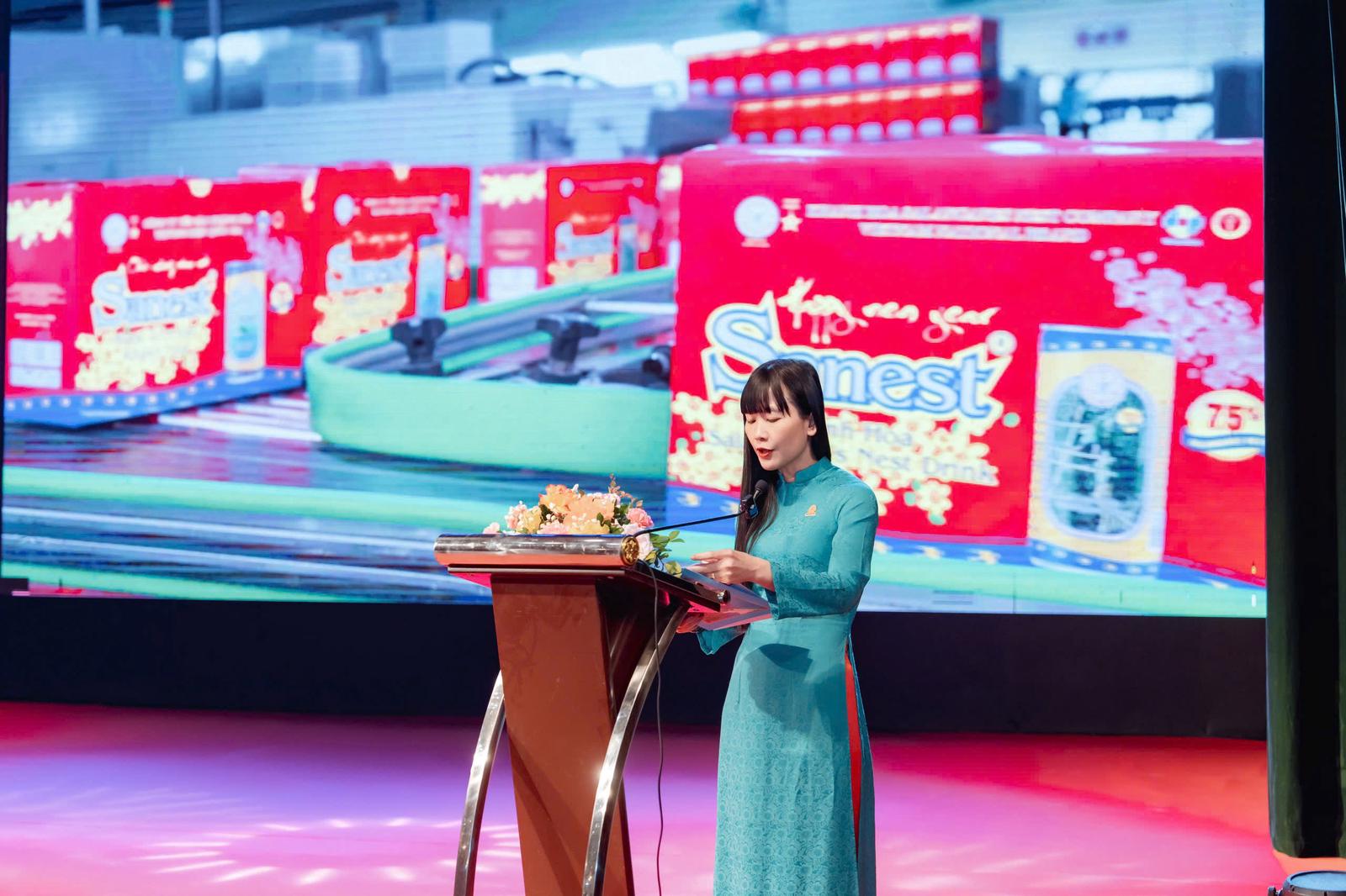 Bà Trịnh Thị Hồng Vân – Chủ tịch HĐTV Công ty Yến sào Khánh Hòa phát biểu tại buổi lễ