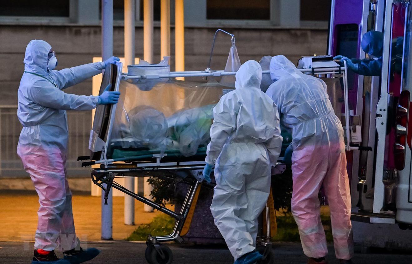 Nhân viên y tế chuyển bệnh nhân mắc COVID-19 tại một bệnh viện ở Rome, Italy. (Ảnh: AFP/TTXVN)