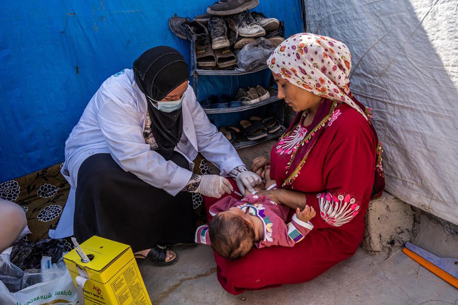 Một em bé 5 tháng tuổi được tiêm phòng tại một trại dành cho những người di tản ở Vùng Kurdistan của Iraq. Ảnh: UNICEF/Anmar Anmar