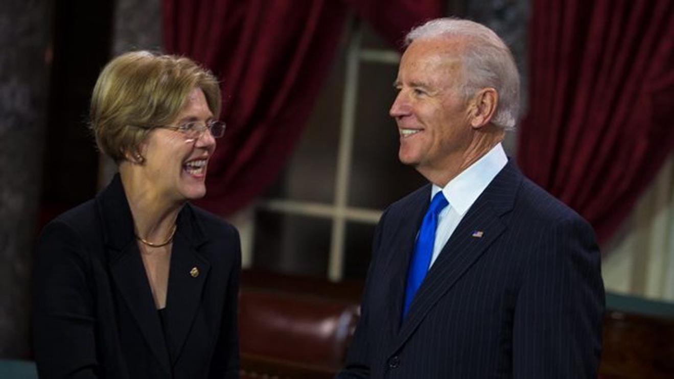 Cựu Phó Tổng thống Mỹ Joe Biden và thượng nghị sỹ Elizabeth Warren (trái). (Nguồn: AP)