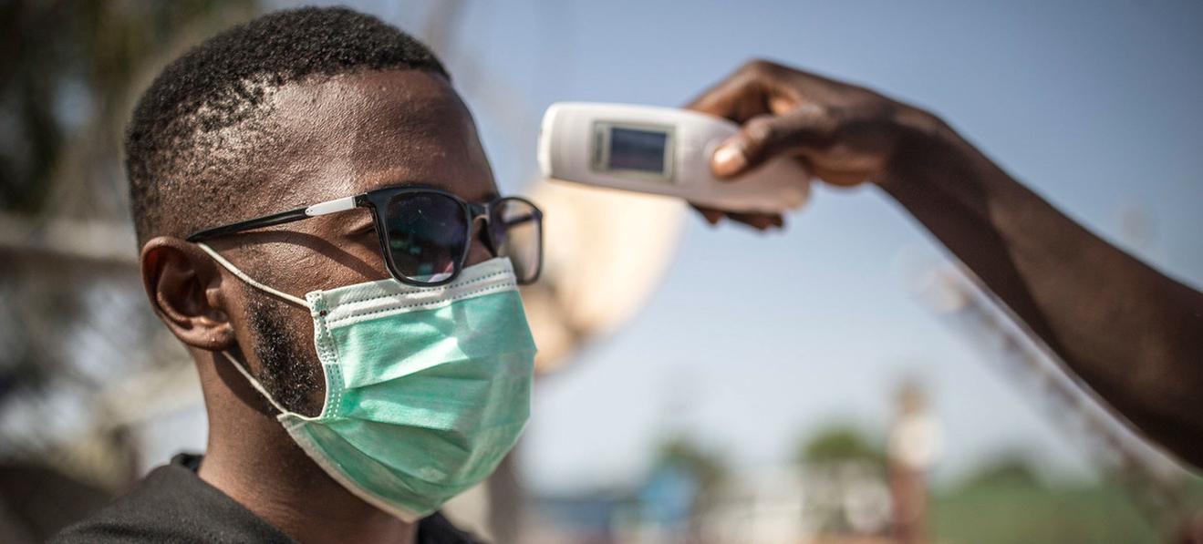 Một người đàn ông được đo nhiệt độ ở Mali để kiểm tra khả năng nhiễm COVID-19. Ảnh: MINUSMA / Harandane Dicko