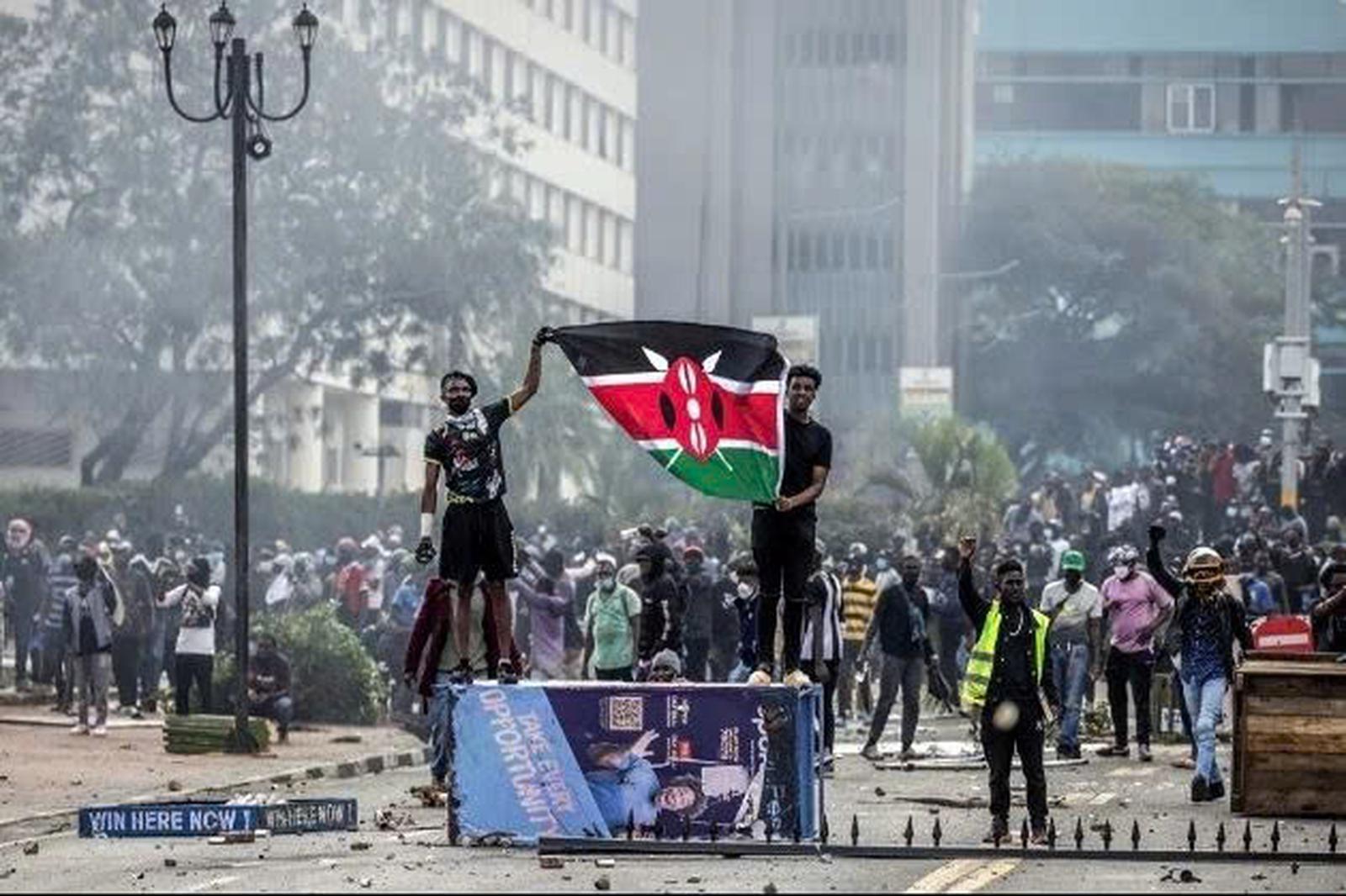 Người biểu tình bên ngoài Quốc hội Kenya phản đối tăng thuế và Dự luật Tài chính 2024. Ảnh: Getty Images