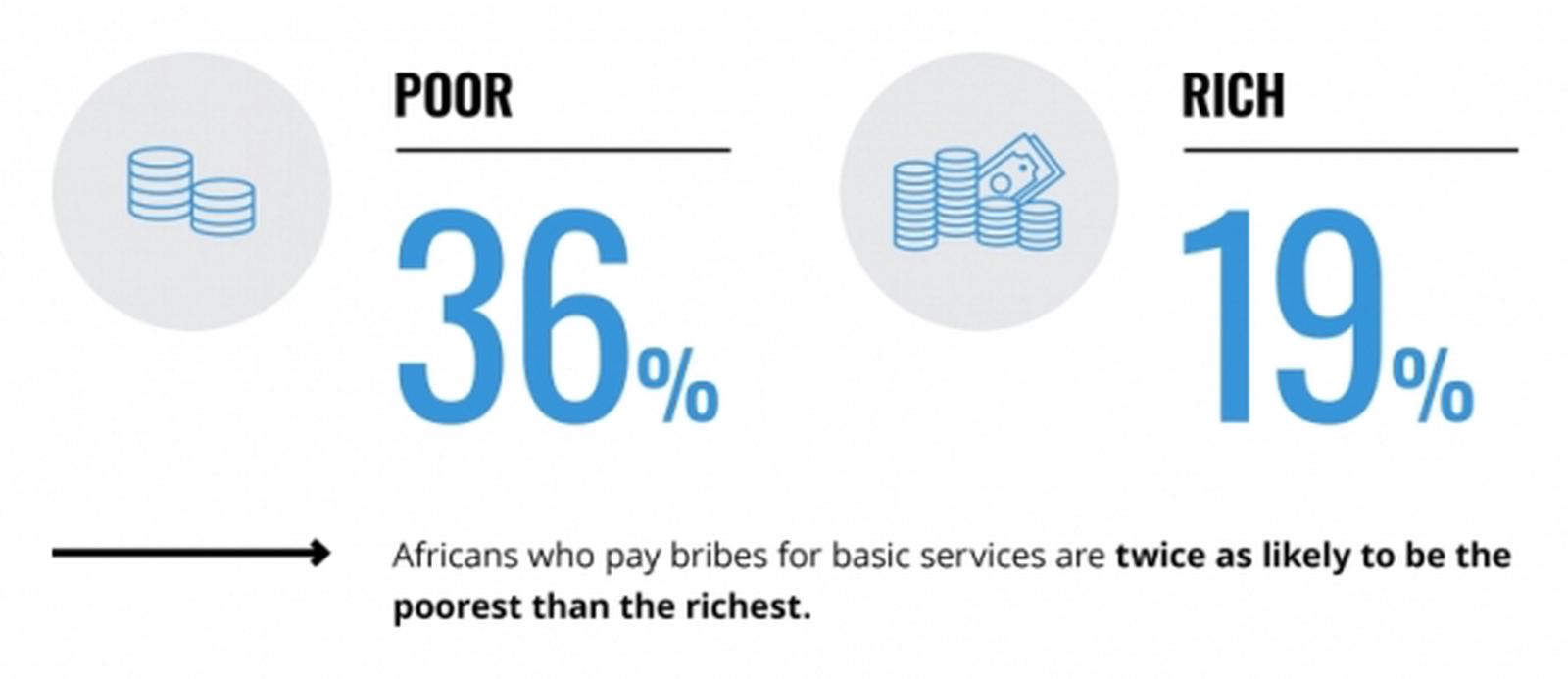 Hối lộ không ảnh hưởng đến mọi người như nhau, mà đánh vào những người nghèo khó nhất hơn là những người giàu nhất. Hậu quả là rất nghiêm trọng, khi mà những người nghèo bị từ chối tiếp cận với các biện pháp chăm sóc y tế, giáo dục và pháp lý quan trọng.