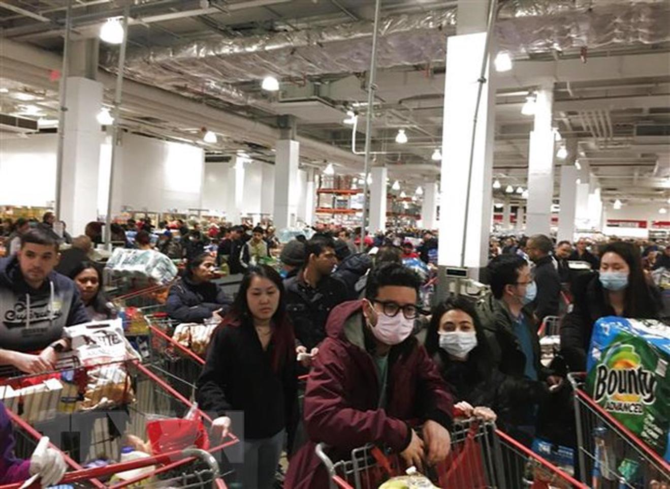 Người dân Mỹ mua nhu yếu phẩm để tích trữ tại một cửa hàng ở New York do lo ngại dịch COVID-19. (Ảnh: THX/TTXVN)