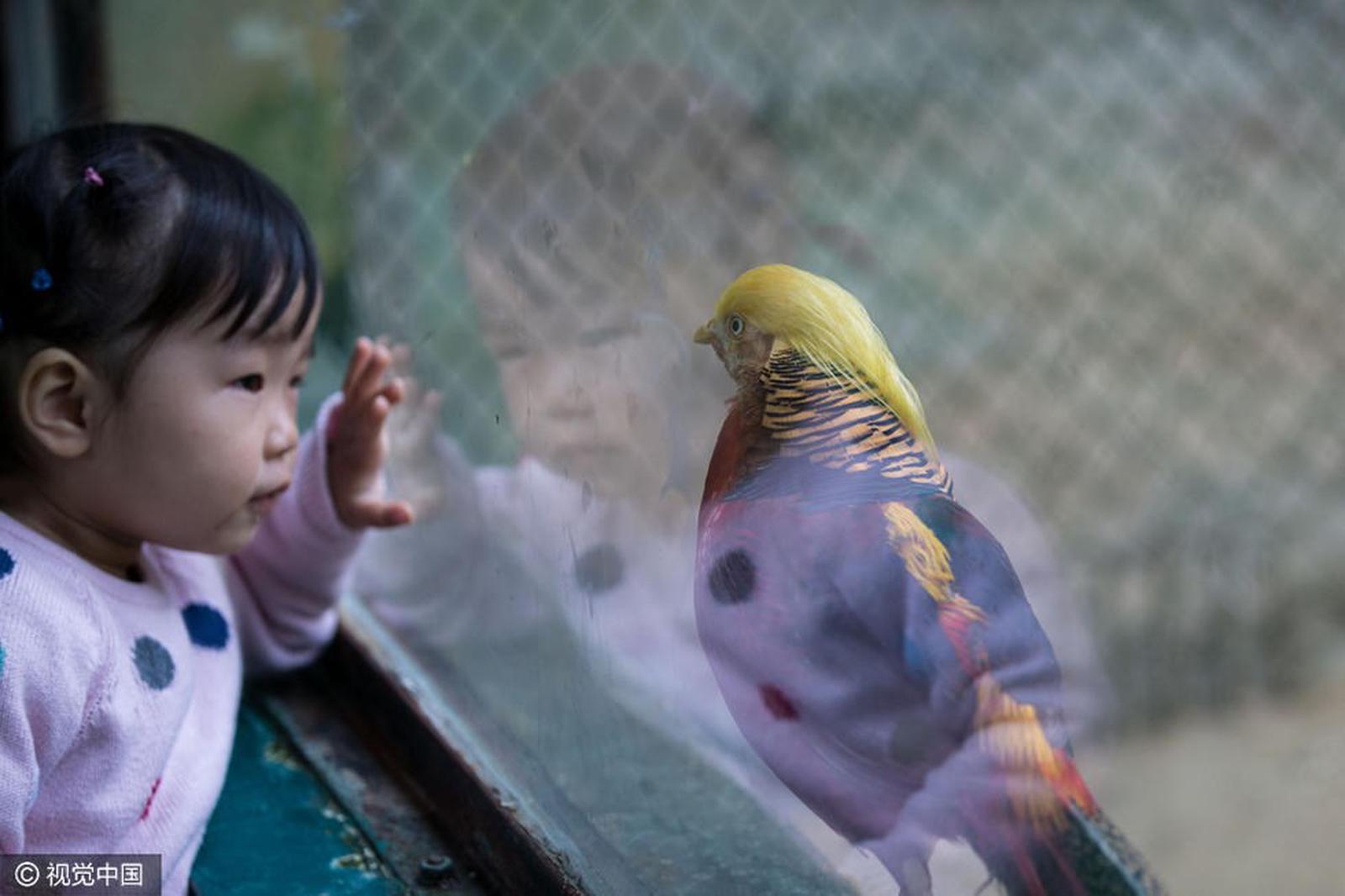 Bé gái đang ngắm nhìn chú chim nổi tiếng. (Nguồn: visualchina.com)