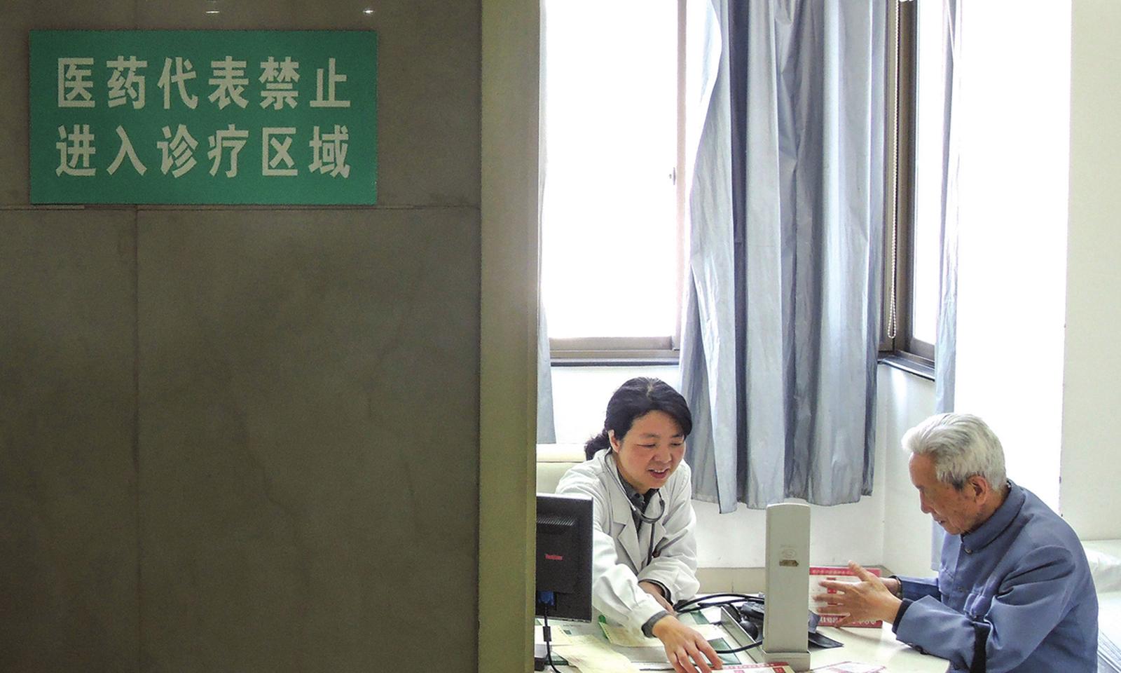 Một biển báo trong bệnh viện cấm nhân viên dược phẩm vào khu vực điều trị ở Nam Kinh, tỉnh Giang Tô, Trung Quốc. Ảnh: Global Times