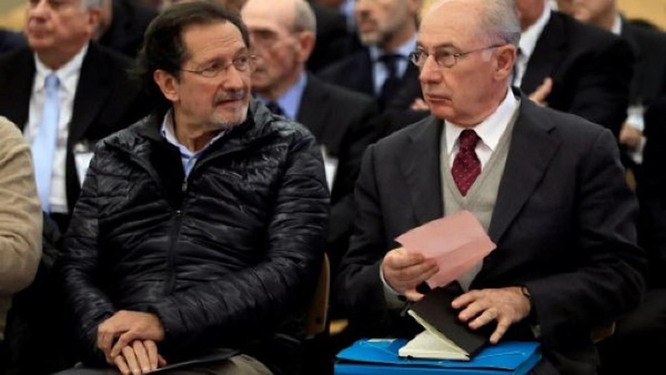 Cựu Giám đốc IMF Rodrigo Rato (phải ảnh) bị bỏ tù hồi tháng 10 năm ngoái vì liên quan bê bối gian lận tại Ngân hàng Tây Ban Nha Bankia. Ảnh: AFP