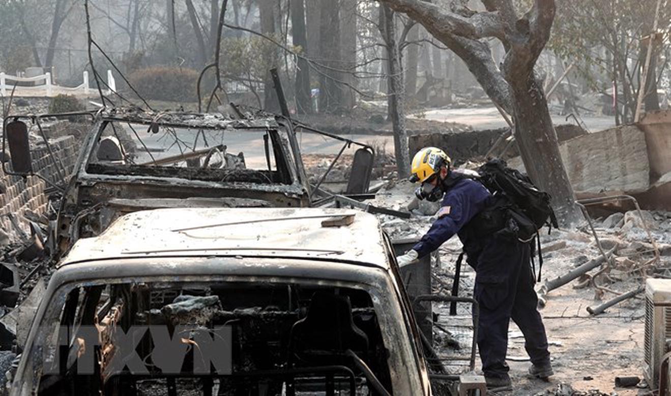 Lực lượng cứu hộ tìm kiếm nạn nhân sau vụ cháy rừng tại Paradise, California ngày 18/11/2018. (Nguồn: THX/TTXVN)