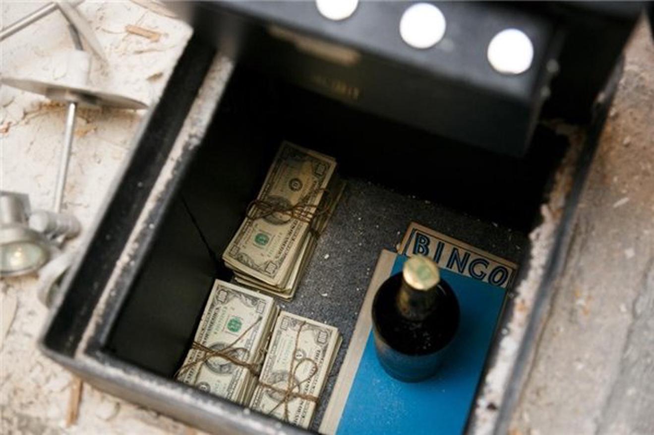 Sau khi mở két sắt, Eddie và Angie vô cùng bất ngờ và sung sướng khi thấy trong đó có nhiều cọc tiền loại 100 USD được buộc dính vào nhau. Bên cạnh là một chai rượu whisky tên James E Pepper.