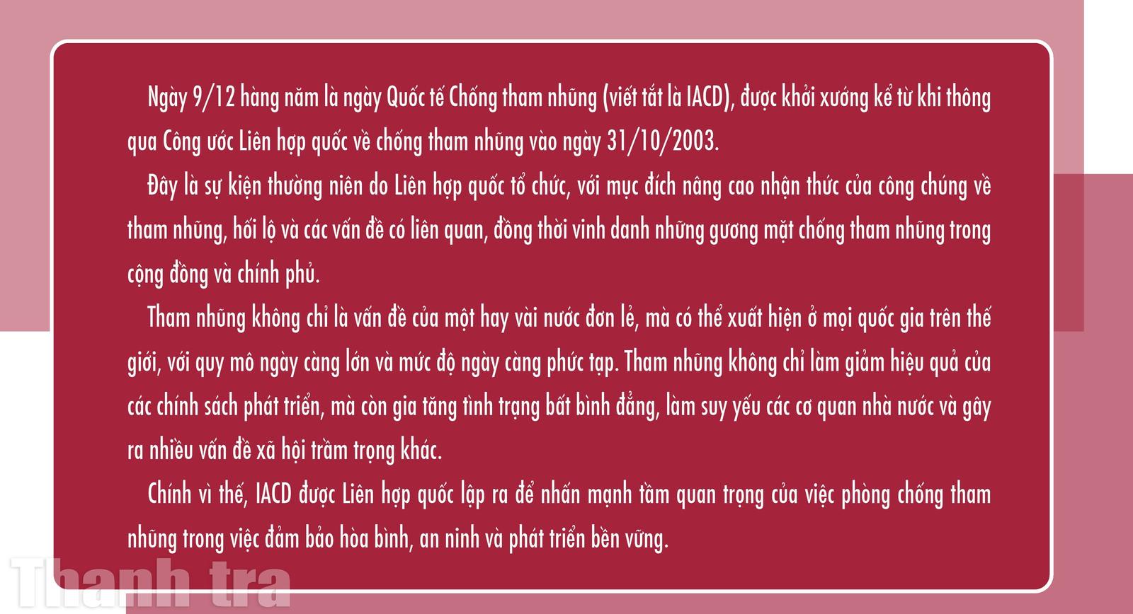 (Thanh tra) - Chủ đề của Ngày Quốc tế chống tham nhũng (9/12) năm 2025 là: "Đoàn kết với giới trẻ trong phòng, chống tham nhũng: Định hình tương lai liêm chính", tiếp tục nhấn mạnh vai trò của giới trẻ trong cuộc chiến chống tham nhũng.