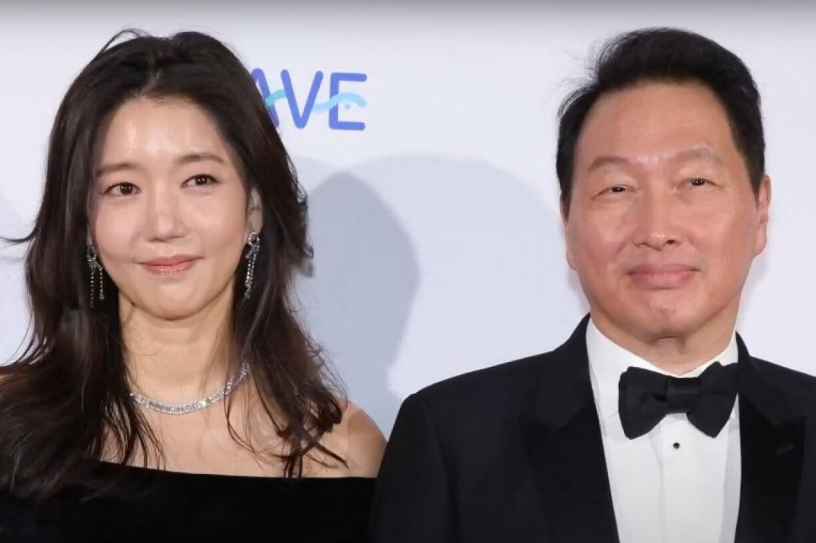 Chủ tịch Tập đoàn SK Chey Tae-won và người tình xuất hiện công khai trước truyền thông. Ảnh: YouTube MBC NEWS