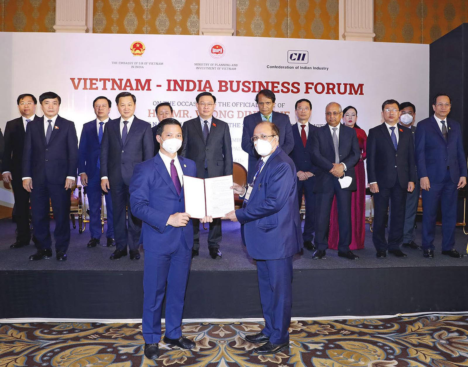 Nhân dịp này, Chủ tịch Quốc hội Vương Đình Huệ chứng kiến lễ trao 12 thoả thuận hợp tác giữa các doanh nghiệp Việt Nam và Ấn Độ trong các lĩnh vực y tế, hợp tác sản xuất thuốc và vaccine, cung cấp nguyên liệu dược phẩm, hợp tác về dầu khí, hợp tác về chuyển giao công nghệ và công nghệ thông tin, hợp tác về tăng cường các hoạt động xúc tiến thương mại, đầu tư, hợp tác về giáo dục và du lịch với tổng mức đầu tư, trong đó có 3 dự án có tổng mức đầu tư cụ thể lên tới 800 triệu USD.