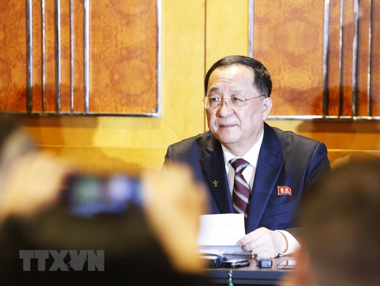 Bộ trưởng Bộ Ngoại giao Triều Tiên Ri Yong-ho chủ trì họp báo về Hội nghị Thượng đỉnh Mỹ-Triều Tiên lần thứ hai. (Ảnh: Lâm Khánh/TTXVN)