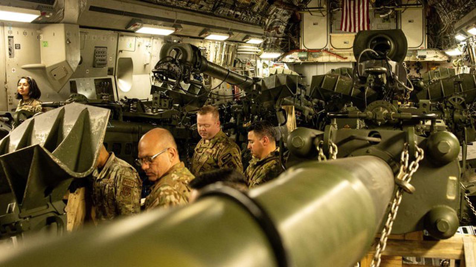 Lựu pháo Mỹ trên đường vận chuyển đến Ukraine. Ảnh: REUTERS