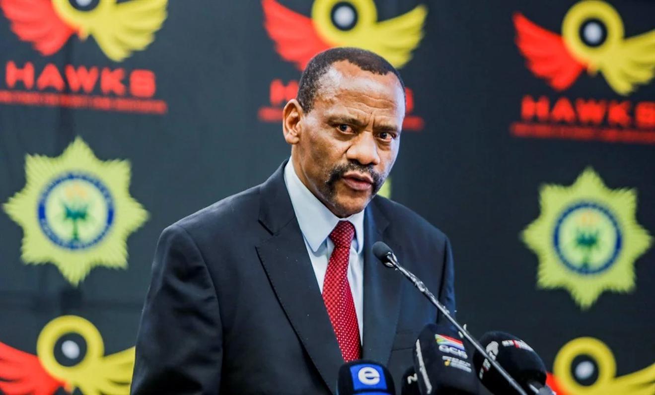 Ông Godfrey Lebeya cho biết, Hawks đã bắt giữ hơn 600 người vì các tội liên quan đến gian lận, rửa tiền. Ảnh: Gallo/OJ Koloti