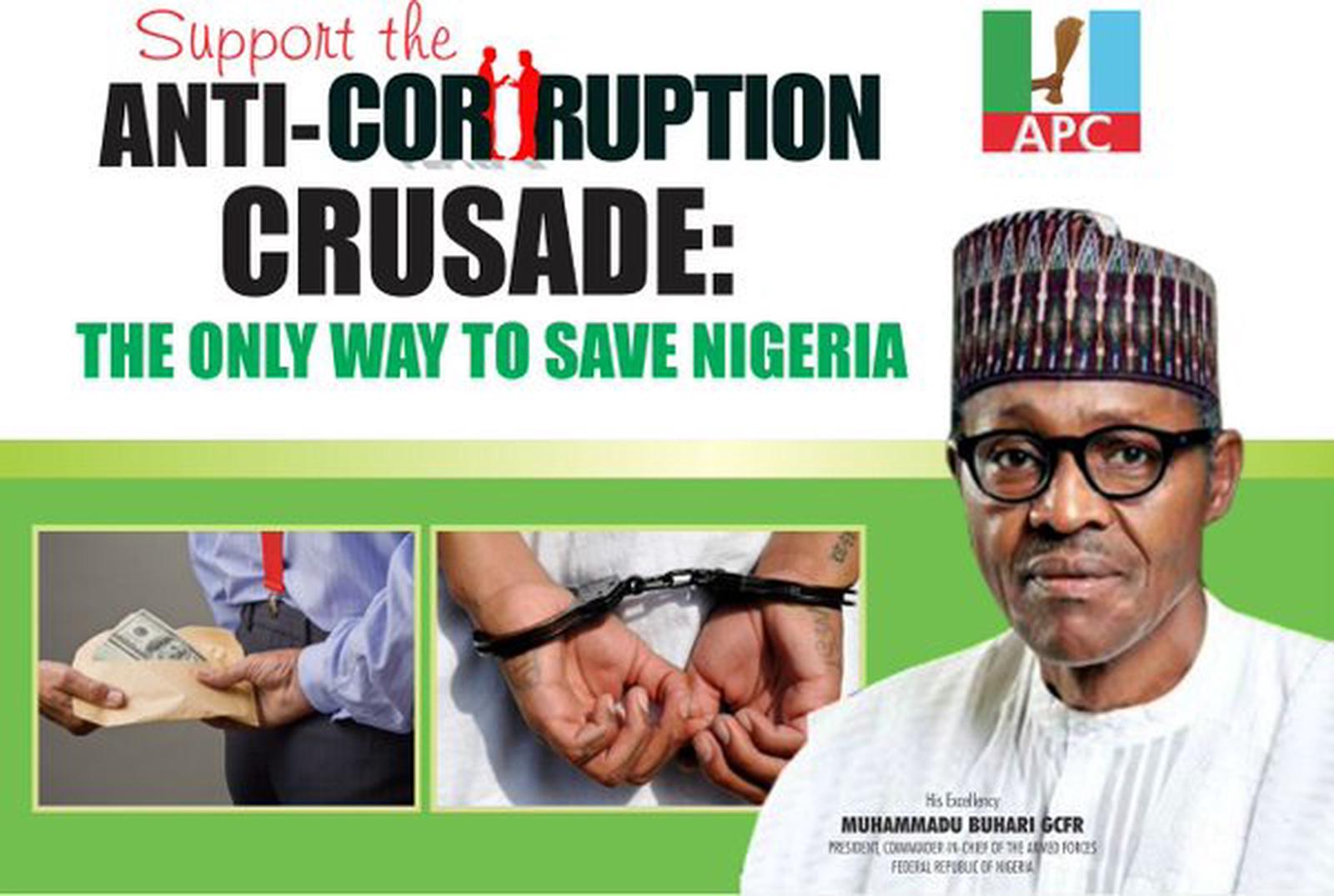 Vào năm 2015, Tổng thống Buhari thề sẽ loại trừ tham nhũng trong nước. Tuy nhiên, cuộc chiến chống lại mạng lưới tham nhũng này dường như khó khăn hơn suy nghĩ khi ông lên nắm quyền. Nhiều người thân thiết của Buhari đã bị bắt trong các chiến dịch chống tham nhũng.