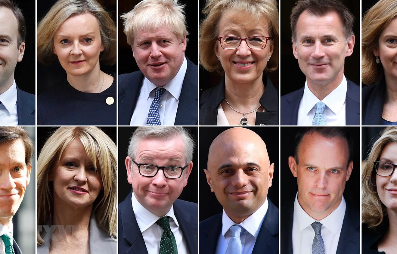 Cựu Ngoại trưởng Anh Boris Johnson (thứ 3 trái -trên) và các ứng cử viên có thể thay thế Thủ tướng Anh Theresa May. (Ảnh: AFP/TTXVN)