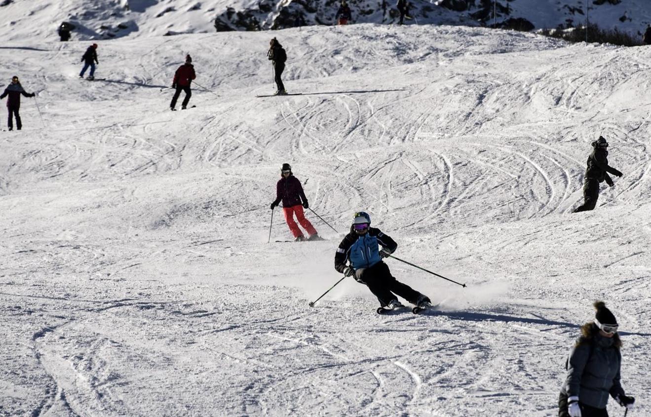 Du khách vui chơi tại khu nghỉ dưỡng trượt tuyết Courchevel, vùng núi Alps của Pháp. (Ảnh: AFP/TTXVN)