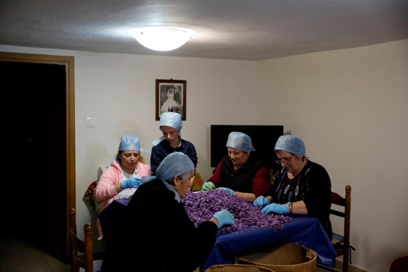 Trong ảnh là cánh đồng hoa nghệ tây ở 1 thị trấn nhỏ miền Trung Hy Lạp mang tên Krokos.Vùng này của Hy Lạp vốn nổi tiếng với những mỏ than và tỷ lệ thất nghiệp cao.Cánh cửa thị trường việc làm đóng chặt với phần lớn thanh niên ở Hy Lạp suốt thời gian suy thoái và khủng hoảng kinh tế vừa qua nên họ đã tìm cách trở về làng quê, như vùng Krokos này, để kiếm sống.Và giờ đây, chính hoa nghệ tây đã mang lại công ăn việc làm cho nhiều người Hy Lạp trẻ tuổi, cải thiện kinh tế cho người dân.Những bông hoa nghệ tây tím biếc vươn lên khỏi lớp đất xám xịt.Trồng và thu hoạch nghệ tây trở thành cứu cánh cho kinh tế vùng Krokos.Người dân địa phương tỉ mẩn thu hoạch từng bông hoa nhỏ.Công việc không quá nặng nhọc nên từ người già…… đến trẻ nhỏ đều có thể làm.Cả gia đình Patsiouras quây quần cùng nhặt nhụy nghệ tây.Nhụy nghệ tây chuẩn bị được sấy khô.Nhụy nghệ tây khô có giá trị rất cao nên nó được chia nhỏ thành từng gram để bán. Hơn 50.000 đầu nhụy mới làm ra được 100g Saffron và giá mỗi gram Saffron là hơn 8 USD (theo trang Greek Saffron).Nhụy nghệ tây được sử dụng trong nhiều món ăn của Hy Lạp, chủ yếu là salad, nước sốt, súp…Nhụy nghệ tây có cả dạng khô nguyên nhụy và dạng bột.Theo VOV.VN