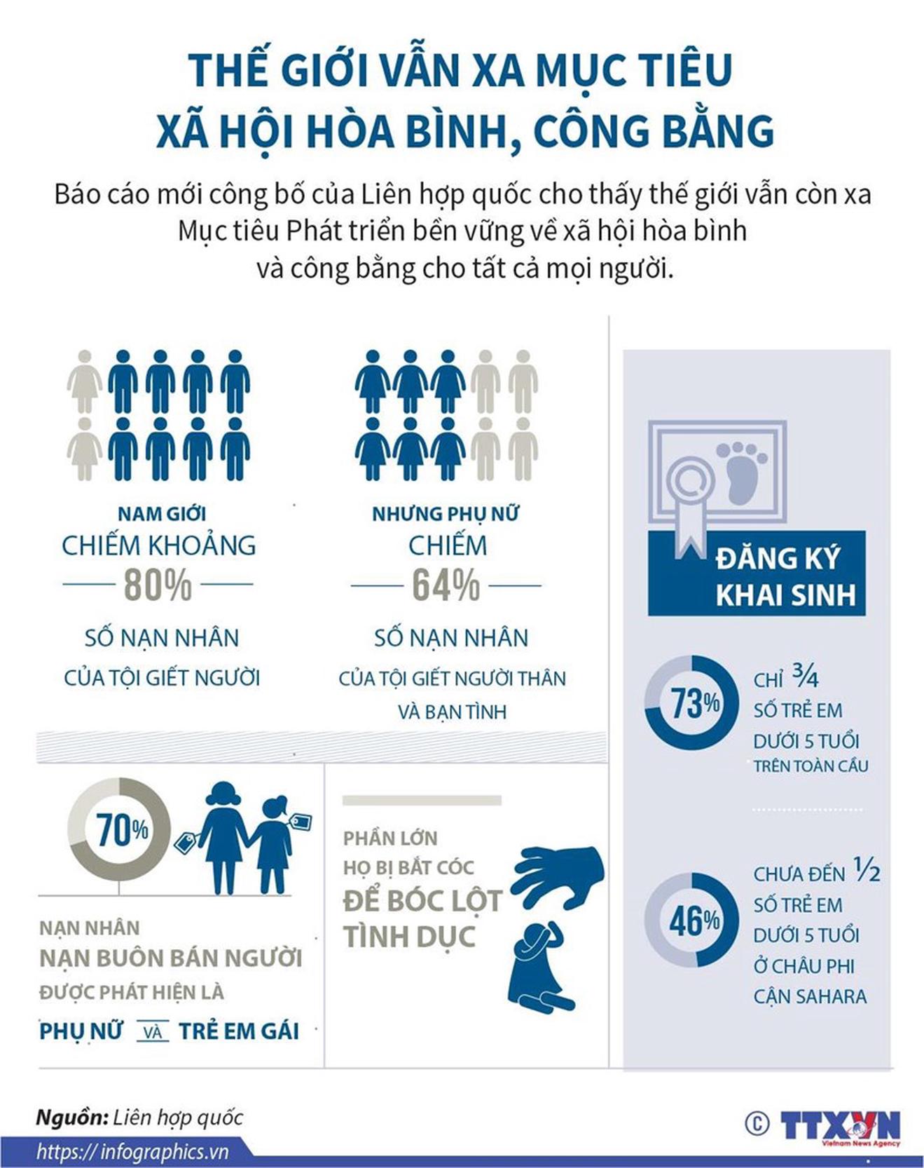 Báo cáo mới công bố của Liên hợp quốc cho thấy thế giới vẫn còn xa Mục tiêu Phát triển bền vững về xã hội hòa bình và công bằng cho tất cả mọi người.