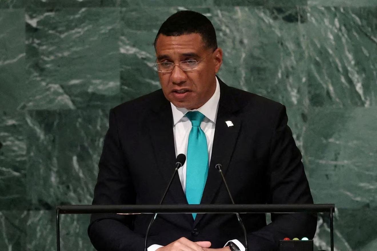 Thủ tướng Jamaica Andrew Holness phát biểu tại Kỳ họp thứ 77 của Đại hội đồng Liên hợp quốc tại New York, Mỹ, ngày 22/9/2022. Ảnh: REUTERS/David 'Dee' Delgado