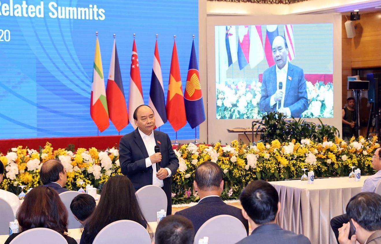 Thủ tướng Nguyễn Xuân Phúc phát biểu tại chuyến thị sát, kiểm tra công tác chuẩn bị cho Hội nghị cấp cao ASEAN 37. (Ảnh: Thống Nhất/TTXVN)
