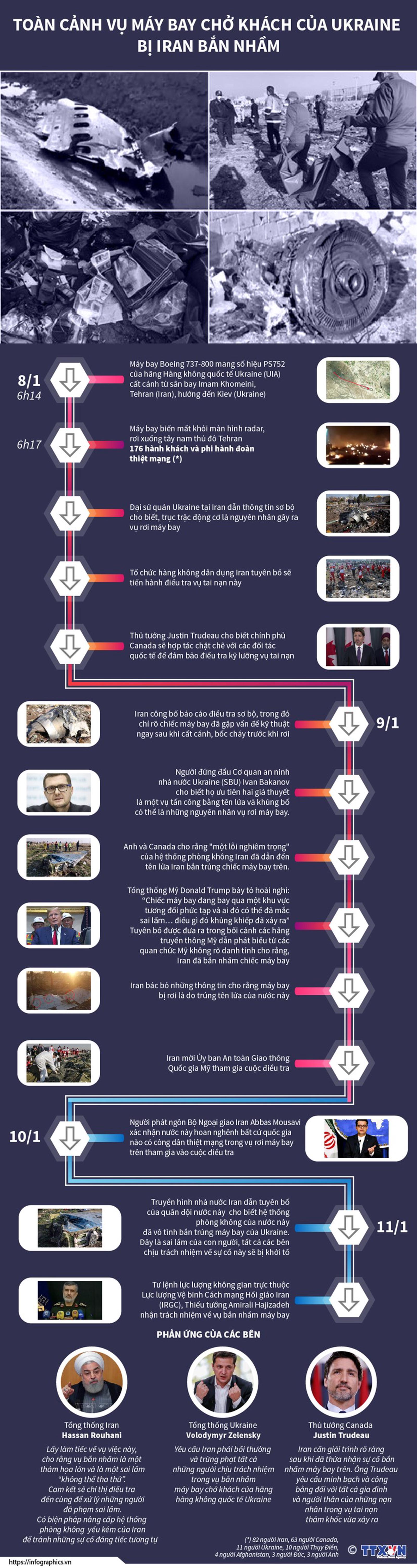 Việc Iran công bố sự thật về vụ bắn nhầm máy bay chở khách của Ukraine diễn ra sau khi các cơ quan tình báo phương Tây cho biết họ có các bằng chứng cho thấy chiếc máy bay đã bị trúng tên lửa chỉ vài giờ sau khi quân đội Iran bắn hàng chục quả tên lửa vào 2 căn cứ của Mỹ và liên quân tại Iraq./.