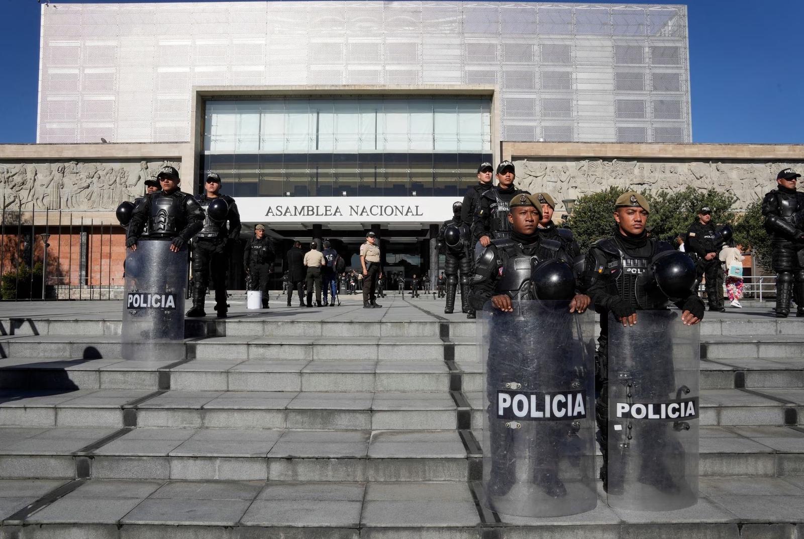 Theo Hãng tin Reuters ngày 17/5, lực lượng cảnh sát và quân đội mặc đồ chống bạo động bảo vệ tòa nhà Quốc hội từ phía sau hàng rào chắn ở Thủ đô Quito, không cho phép ai vào bên trong.