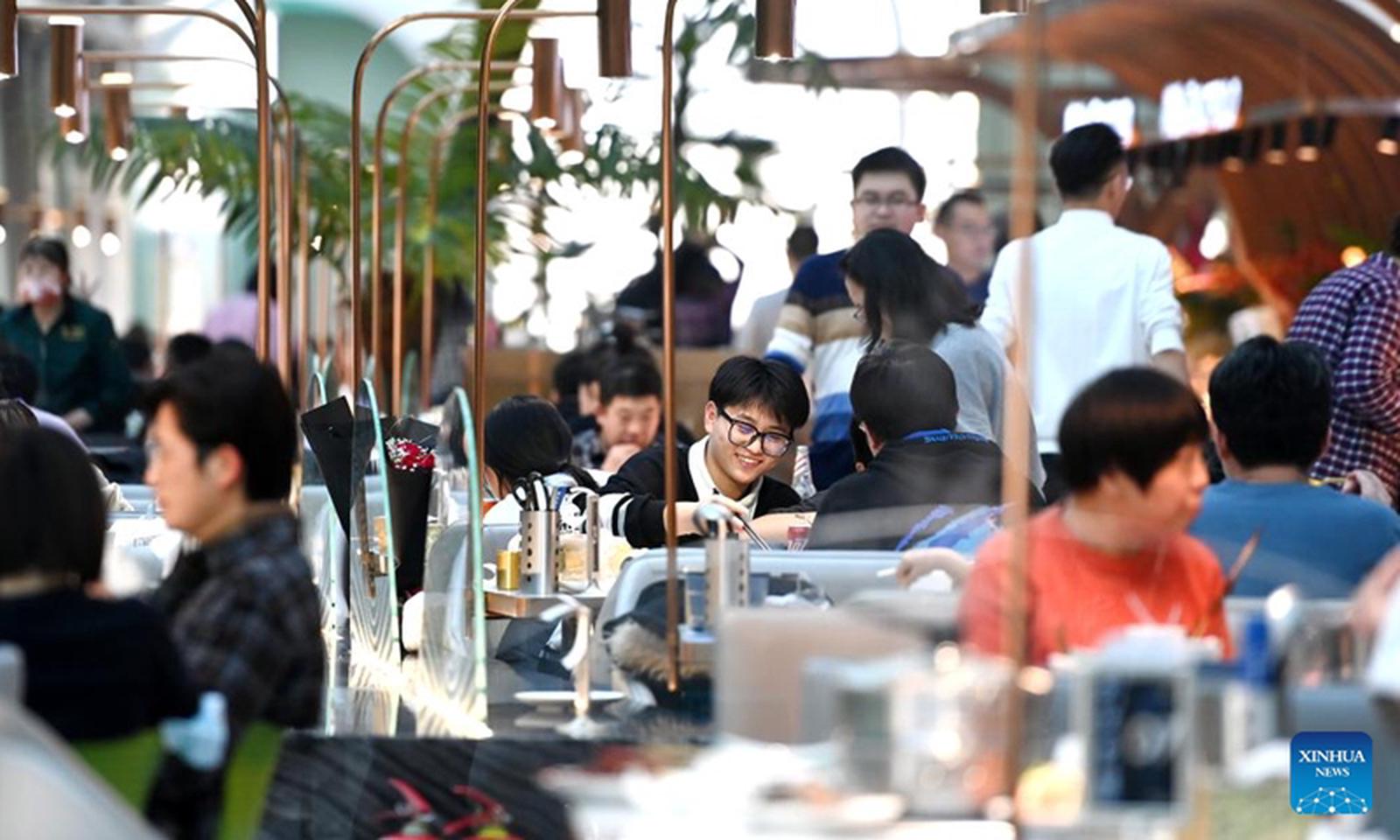 Mọi người thưởng thức tiệc buffet tại một trung tâm thương mại ở Thiên Tân, Trung Quốc trong ngày đầu tiên của kỳ nghỉ năm mới, 31/12/2022. Ảnh: Xinhua/Zhao Zishuo