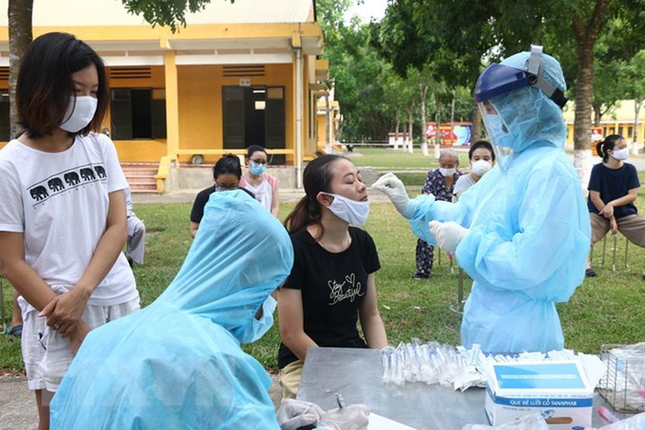 Lấy mẫu xét nghiệm cho các công dân cách ly. (Ảnh: Hoa Mai/TTXVN)