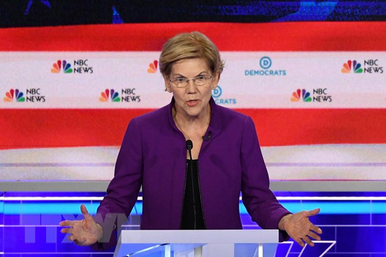 Ứng cử viên Tổng thống Mỹ Elizabeth Warren phát biểu trong buổi tranh luận tại Miami, bang Florida ngày 26/6/2019. (Nguồn: AFP/TTXVN)