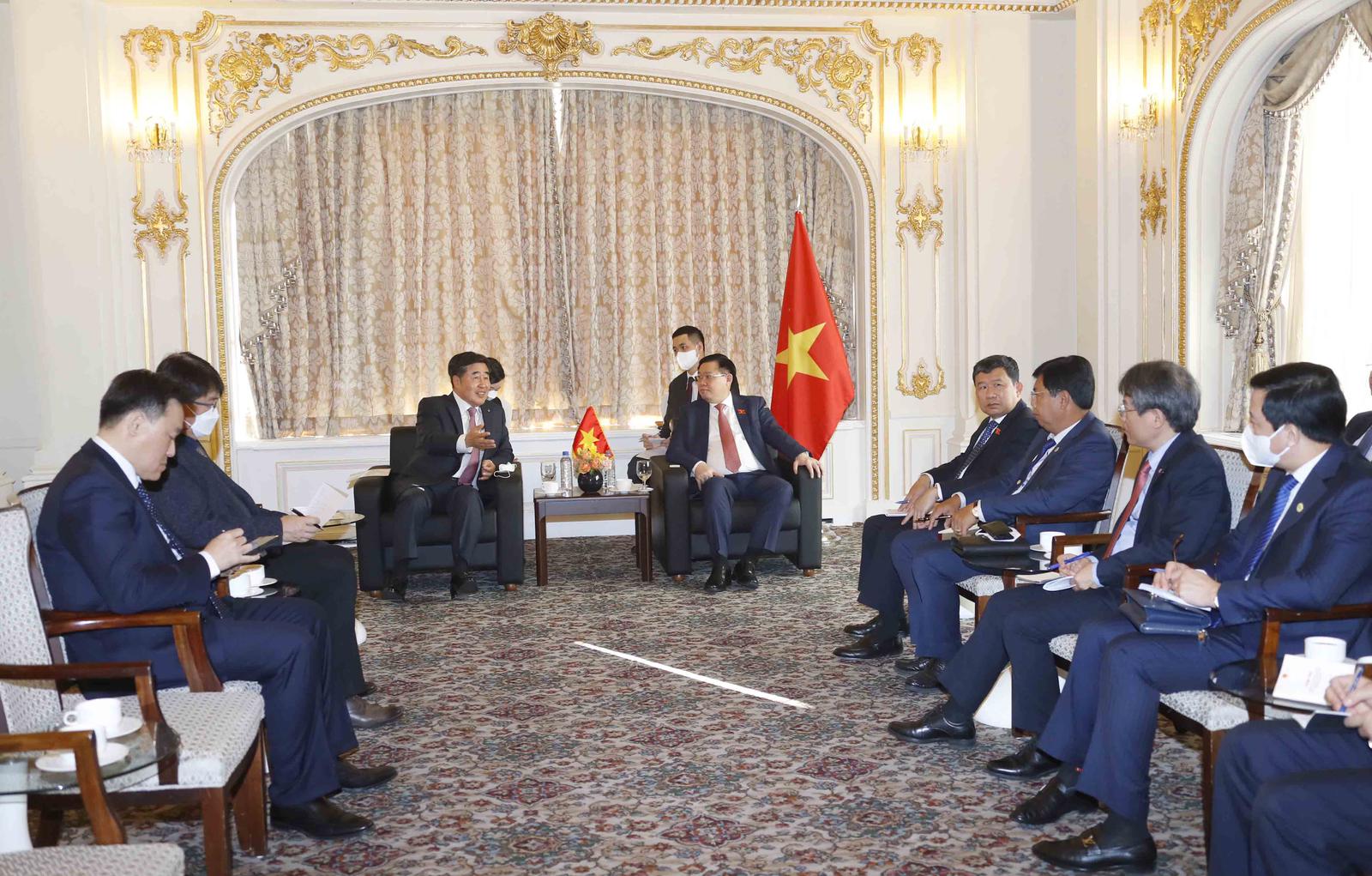 Tiếp lãnh đạo các tập đoàn, doanh nghiệp hàng đầu Hàn Quốc, Chủ tịch Quốc hội Vương Đình Huệ cho biết, Việt Nam và Hàn Quốc đang nỗ lực đưa quan hệ song phương lên tầm cao mới. Ảnh: D.Tấn